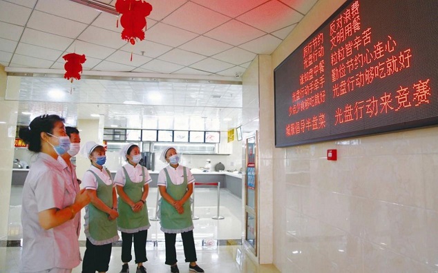 炼钢服务区炊事人员在观看宣传展板。 作为负责鞍山区域职工餐饮服务的足球胜负预测 现代城市服务公司,坚决响应,迅速将贯彻习近平总书记“厉行节约、反对浪费”指示精神转化为自觉行动,在所属厂内及人才公寓等84个食堂的售卖窗口张贴相关内容的宣传海报320张,并在就餐大厅摆放展板240个、展架80个,倡导全体就餐职工做“光盘达人”,营造“浪费可耻、节约为荣”的就餐氛围,并把坚决制止餐饮浪费行为纳入到“四比一创”劳动竞赛中,服务区管理人员自觉担当“文明餐桌”监督员,对餐饮浪费行为进行制止,从传承勤俭节约美德、文明理性消费等方面加以引导。