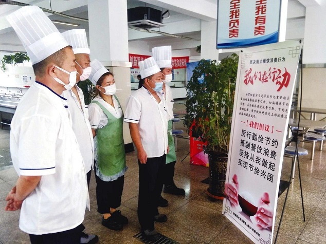 自觉杜绝餐饮浪费行为。 据该公司服务二区负责人张巍书记介绍,她们组织厨师合理调配菜品分量,给职工提供“半份菜”服务,在节约的前提下满足职工对品种多样化的需求。同时,树立绿色环保理念,将拒绝餐饮浪费理念融入到餐饮生产、加工、服务全过程,餐饮人员将切剩下的白菜、菜花菜根及萝卜皮等腌制成小凉菜,芹菜叶做成菜饼,剔完肉的大棒骨熬成营养美味的骨头汤……这些独特的菜品,既节约了食材成本,又有效减少了餐厨垃圾,还赢得了就餐职工的一致好评。