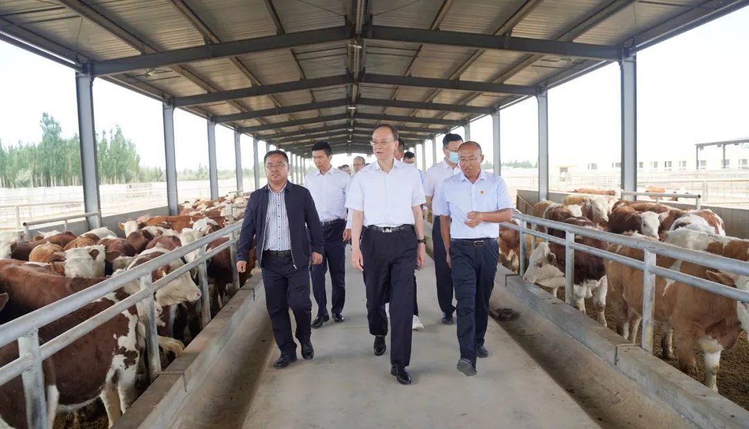 (谭成旭一行来到塔吉克阿巴提镇养牛场实地调研)