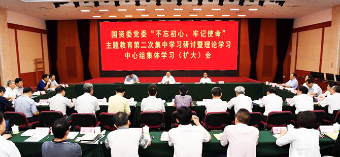 7月11日至12日,国资委党委开展“不忘初心、牢记使命”主题教育第二次集中学习研讨暨理论学习中心组集体学习。国资委党委书记、主任郝鹏主持学习研讨并讲专题党课,强调要深入学习贯彻习近平新时代中国特色社会主义思想,认真贯彻落实习近平总书记在中央政治局第十五次集体学习、中央和国家机关党的建设工作会议上的重要讲话精神,增强“四个意识”、坚定“四个自信”、坚决做到“两个维护”,高质量开展好主题教育,始终牢记初心使命,坚定不移做强做优做大国有资本、发展壮大国有经济,切实监管好、守护好全体人民的共同财富,为我国经济社会持续健康发展作出新的更大贡献。中央第二十一指导组副组长诸葛彩华及有关成员现场指导。国资委党委委员、副部长级干部,秘书长、总会计师,各厅局、改革办,驻委纪检监察组副处级以上干部,直属事业单位负责同志参加学习研讨。