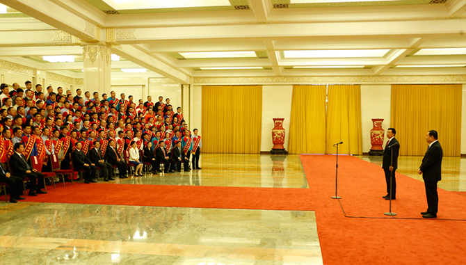 中央企业先进集体和劳动模范表彰大会21日在人民大会堂举行,国务委员王勇出席大会并会见先进集体和劳动模范代表。国资委党委书记、主任郝鹏出席大会并讲话。国务院副秘书长孟扬出席会议。人力资源社会保障部副部长、党组成员张义全宣读表彰决定。国资委副主任、党委委员任洪斌主持会议,国资委党委委员出席会议。