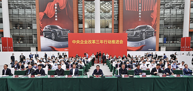 在国企改革三年行动时间过半的关键节点,6月4日,国务院国资委在中国一汽以“现场+视频”形式召开中央企业改革三年行动推进会,总结工作成效,推广改革经验,以典型示范带动改革深化。国务院国资委党委书记、主任,国资委全面深化改革领导小组组长郝鹏出席会议并讲话强调,要深入学习贯彻习近平总书记重要指示精神,贯彻落实党中央、国务院决策部署,抢抓宝贵时间窗口、珍惜有利条件形势,真抓实干、锐意进取,进一步抓紧抓实改革三年行动,更好促进中央企业高质量发展,加快建设世界一流企业,为全面建设社会主义现代化国家作出更大贡献。国务院国资委党委委员、副主任翁杰明主持会议。国务院国资委党委委员、副主任任洪斌,党委委员、秘书长彭华岗出席会议。
