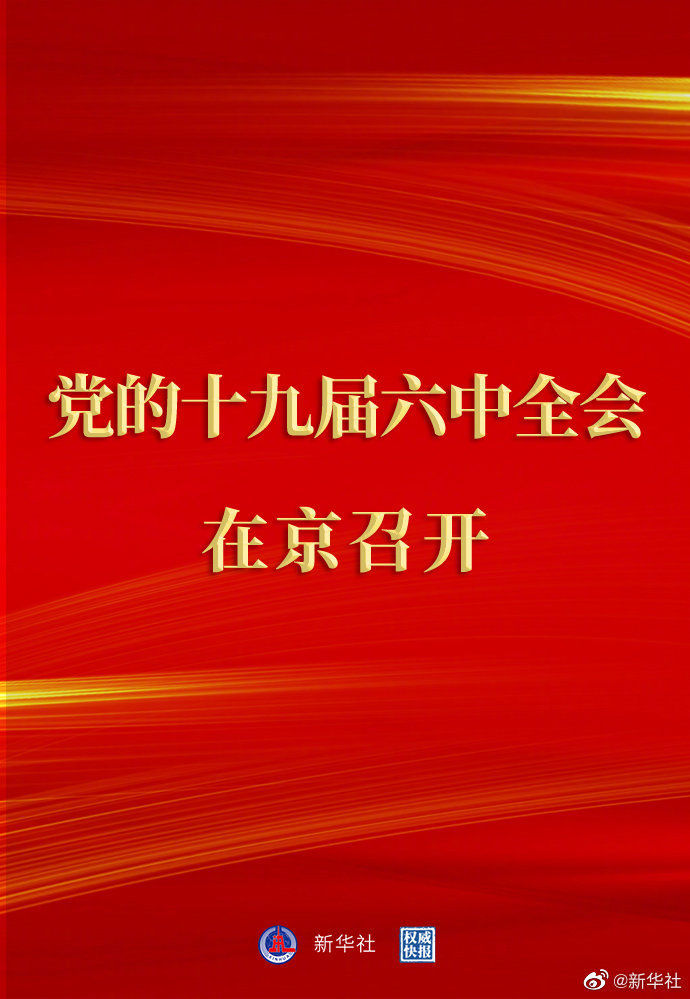 中国共产党第十九届中央委员会第六次全体会议在京召开 来源:新华社微博 2021-11-08
