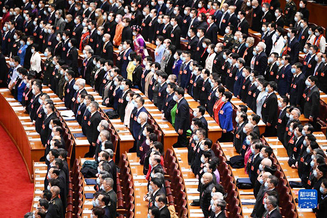 大会首先审议通过了政协第十三届全国委员会第五次会议议程。