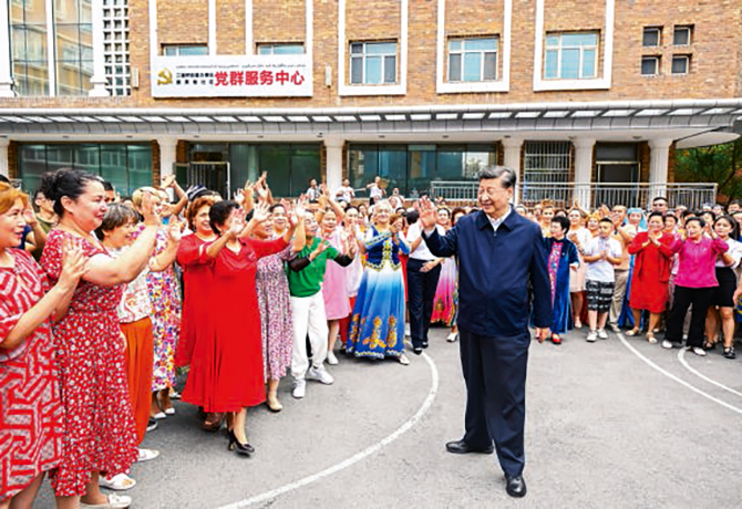 13日上午,习近平来到乌鲁木齐市天山区固原巷社区。该社区少数民族居民占95%以上。习近平走进党群服务中心大厅、爱心之家、舞蹈室、少儿阅览室,同社区居民亲切交流。习近平饶有兴致观看儿童中华优秀传统文化知识表演,他指出,中华优秀传统文化教育抓早抓小、久久为功、潜移默化、耳濡目染,有利于夯实传承中华优秀传统文化的根基。在维吾尔族居民阿布来提·吐尔逊家中,习近平仔细察看客厅、卧室、厨房等,同一家人围坐在一起拉家常。习近平强调,民族团结是我国各民族人民的生命线,新疆各民族都是中华民族大家庭不可分割的成员,要格外珍惜安定团结的大好局面,56个民族拧成一股绳,保持定力、脚踏实地,同心协力、踔厉奋发,在党的领导下为实现第二个百年奋斗目标继续奋斗。习近平指出,社区工作连着千家万户,要充分发挥社区基层党组织的战斗堡垒作用,把工作重心下沉,紧贴各族居民所思所想所盼,帮助大家办好事、办实事、解难题,促进各族群众手足相亲、守望相助,共建美好家园、共创美好未来。