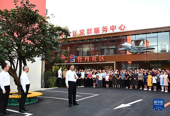 习近平随后来到皇姑区三台子街道牡丹社区。该社区建于上世纪80年代,共有3000多户居民,近年来经过基础设施改造和服务改善,成为基层治理示范社区。习近平先后走进社区党群服务中心、群众活动中心和养老服务中心,向社区工作者、幸福教育课堂的师生和老年志愿者了解当地加强基层党建、改善人居环境、开展为民服务等情况。在老年餐厅,习近平向正在用餐的老人们询问饭菜价格贵不贵、社区服务好不好、生活上还有什么困难。