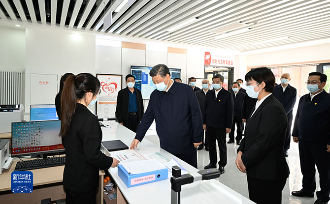 5月10日,中共中央总书记、国家主席、中央军委主席习近平在河北省雄安新区考察,并主持召开高标准高质量推进雄安新区建设座谈会。这是10日上午,习近平在容东片区南文营社区党群服务中心考察。(新华社记者 李学仁 摄)