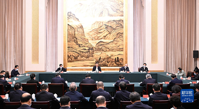 5月17日上午,中共中央总书记、国家主席、中央军委主席习近平在陕西西安主持中国-中亚峰会前夕,专门听取陕西省委和省政府工作汇报,发表了重要讲话。(新华社记者 申宏 摄)