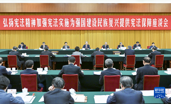 12月4日,“弘扬宪法精神,加强宪法实施,为强国建设、民族复兴提供宪法保障”座谈会在北京举行。会上传达了习近平重要指示。中共中央政治局常委、全国人大常委会委员长赵乐际出席座谈会并讲话。新华社记者 高洁 摄