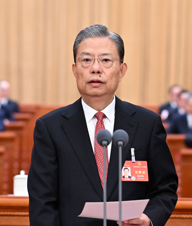 3月5日,第十四届全国人民代表大会第二次会议在北京人民大会堂开幕。赵乐际主持开幕会。新华社记者 谢环驰 摄
