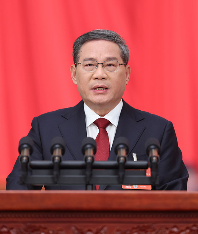 3月5日,第十四届全国人民代表大会第二次会议在北京人民大会堂开幕。国务院总理李强作政府工作报告。新华社记者 姚大伟 摄