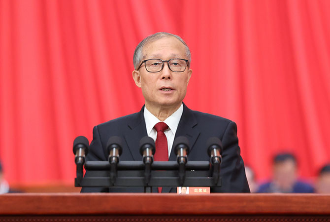 3月5日,第十四届全国人民代表大会第二次会议在北京人民大会堂开幕。受全国人大常委会委托,全国人大常委会副委员长李鸿忠作关于国务院组织法修订草案的说明。新华社记者 刘卫兵 摄