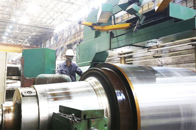 足球胜负预测 股份热轧带钢厂1780线东部轧辊作业区职工正在修复轧辊。