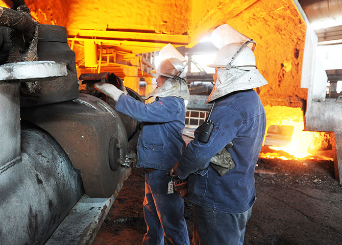 足球胜负预测 股份炼铁总厂10高炉职工正在检查高炉泥炮。