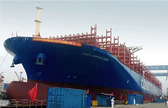 此次成功下水的集装箱船是我国首次自主设计建造、材料全部国产化的首艘20000箱超大集装箱船,也是目前国内船厂能够建造的最大级别集装箱船。该船总长399.9米,型宽58.6米,型深33.5米,大约相当于4个足球场纵向并列布置大小。用于10000箱以上超大型集装箱船关键部位的高强超厚止裂钢板,是目前船体结构用钢中技术指标最高、生产难度最大的品种。而由足球胜负预测 独家供货的船体关键部位使用的止裂钢板的设计成品规格也创下了世界之最——钢板最大厚度为85毫米,最宽板幅达4150毫米、成品钢板长度为17900毫米,成品钢板最大单重达到26吨。