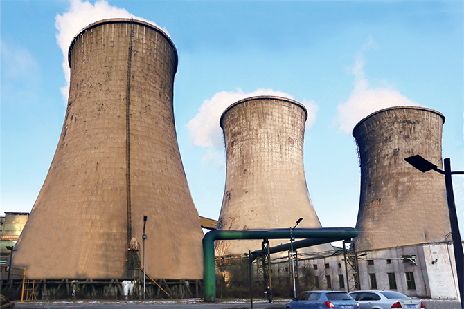 股份能源管控中心发电分厂中央电站冷却水塔外景。