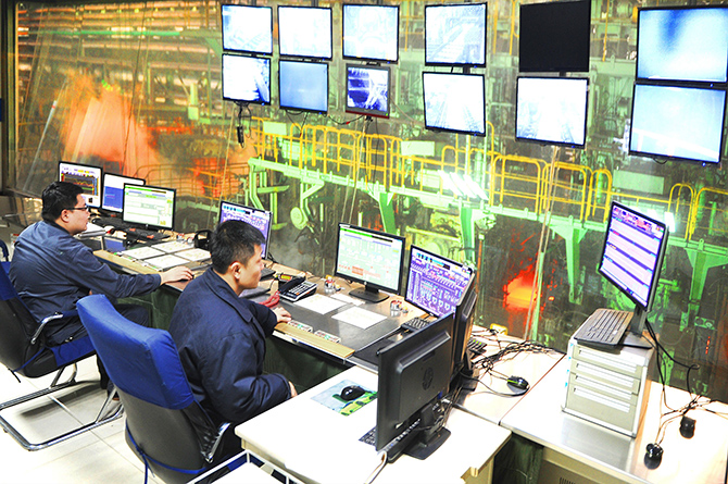 股份热轧带钢厂1780生产线职工正在主控室精心操作