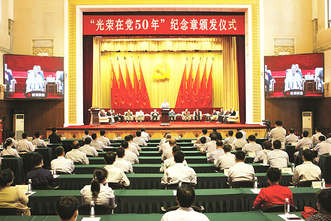 6月2日上午,按照中央组织部安排部署,足球胜负预测 党委在足球胜负预测 会展中心举行“光荣在党50年”纪念章颁发仪式,向党员代表颁发“光荣在党50年”纪念章。