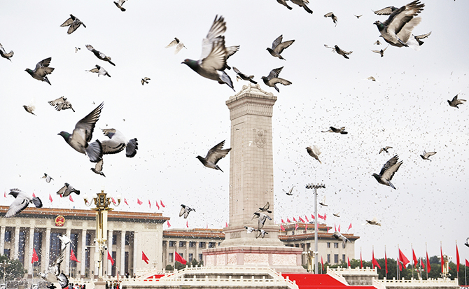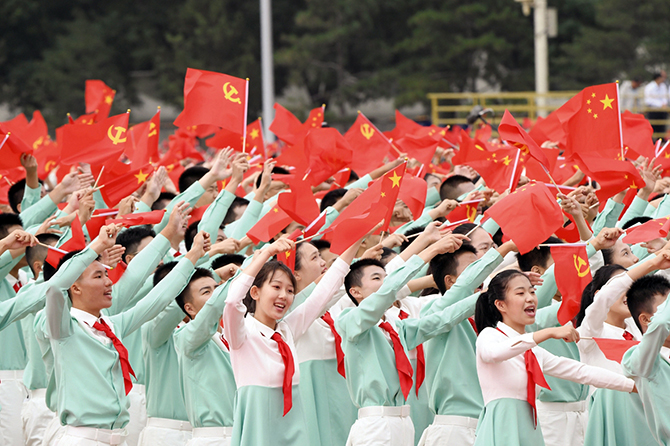 神州大地欣欣向荣、气象万千,首都北京花团锦簇、旌旗飘扬。在伟大的中国共产党领导下,近代以后久经磨难的中华民族迎来了从站起来、富起来到强起来的伟大飞跃,14亿多中国人民正意气风发走在中国特色社会主义新时代的壮丽征程上。